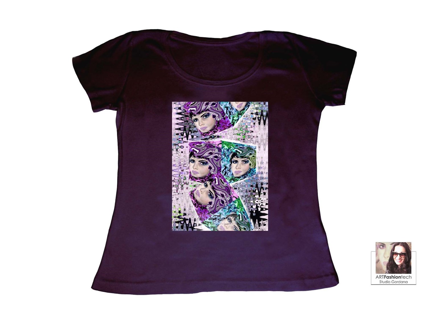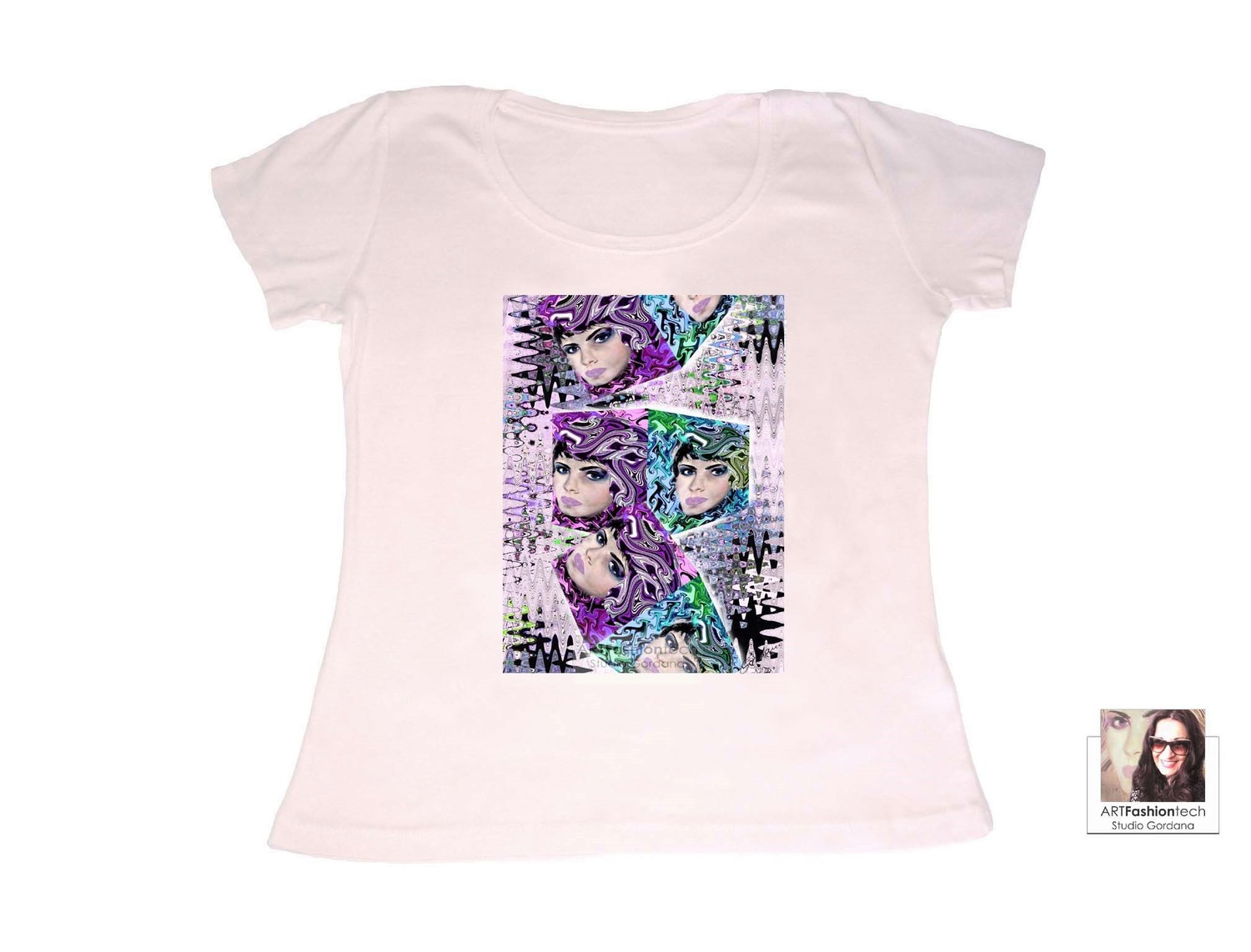 Ženska majica s tiskom originalne autorske ilustracije , 100%pamuk . Kao modna ilustracija -slika je original i unikat autorice i dizajnerice Gordane Drenovac te su majice izrađene u limitiranoj seriji . Slika – tisak izrađen je na digitalnom tiskarskom stroju za tekstilni tisak . Limitirana serija uključuje izradu jednog ili male količine istih proizvoda po specifičnoj naruđbi .