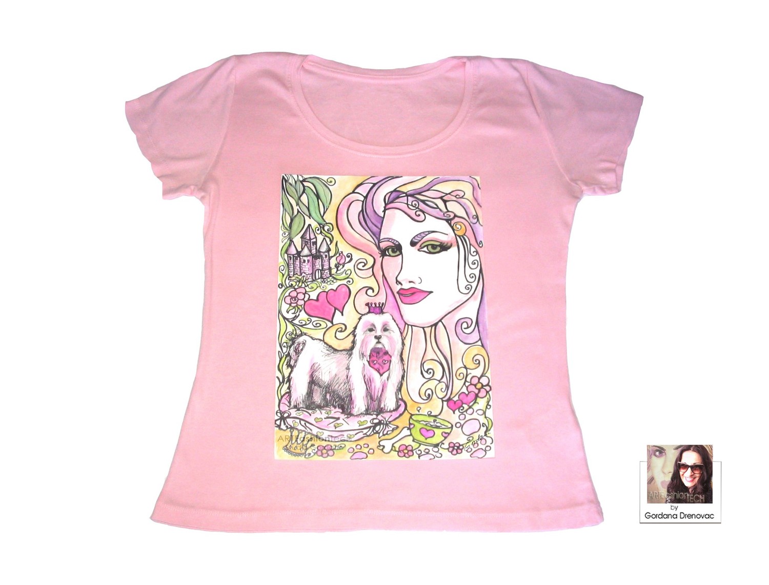 Ženska majica s tiskom originalne autorske ilustracije , 100%pamuk . Kao modna ilustracija -slika je original i unikat autorice i dizajnerice Gordane Drenovac te su majice izrađene u limitiranoj seriji . Slika – tisak izrađen je na digitalnom tiskarskom stroju za tekstilni tisak . Limitirana serija uključuje izradu jednog ili male količine istih proizvoda po specifičnoj naruđbi .