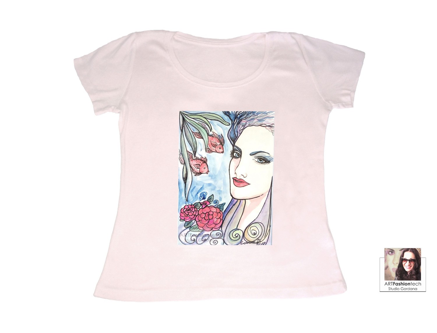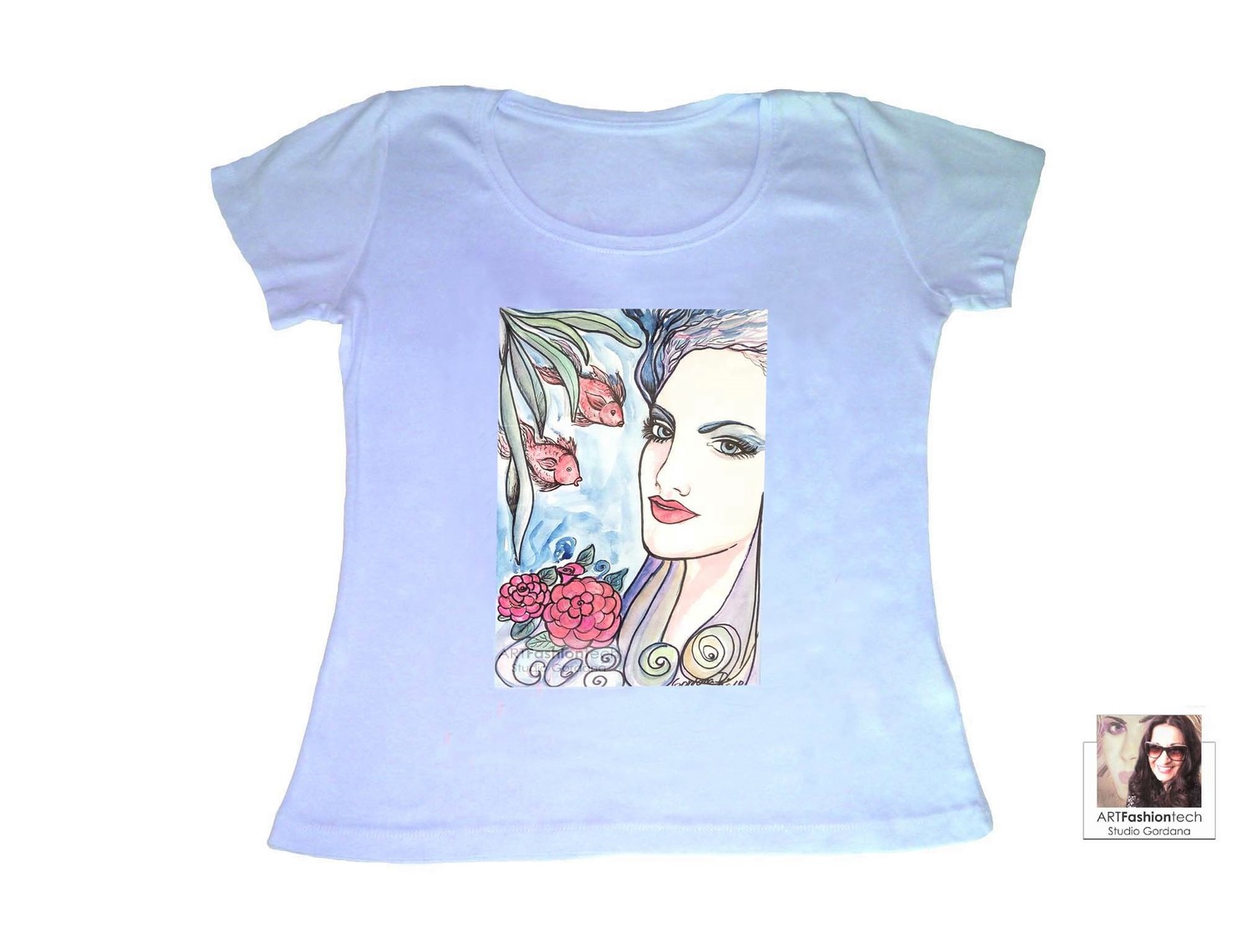 Ženska majica s tiskom originalne autorske ilustracije , 100%pamuk . Kao modna ilustracija -slika je original i unikat autorice i dizajnerice Gordane Drenovac te su majice izrađene u limitiranoj seriji . Slika – tisak izrađen je na digitalnom tiskarskom stroju za tekstilni tisak . Limitirana serija uključuje izradu jednog ili male količine istih proizvoda po specifičnoj naruđbi .