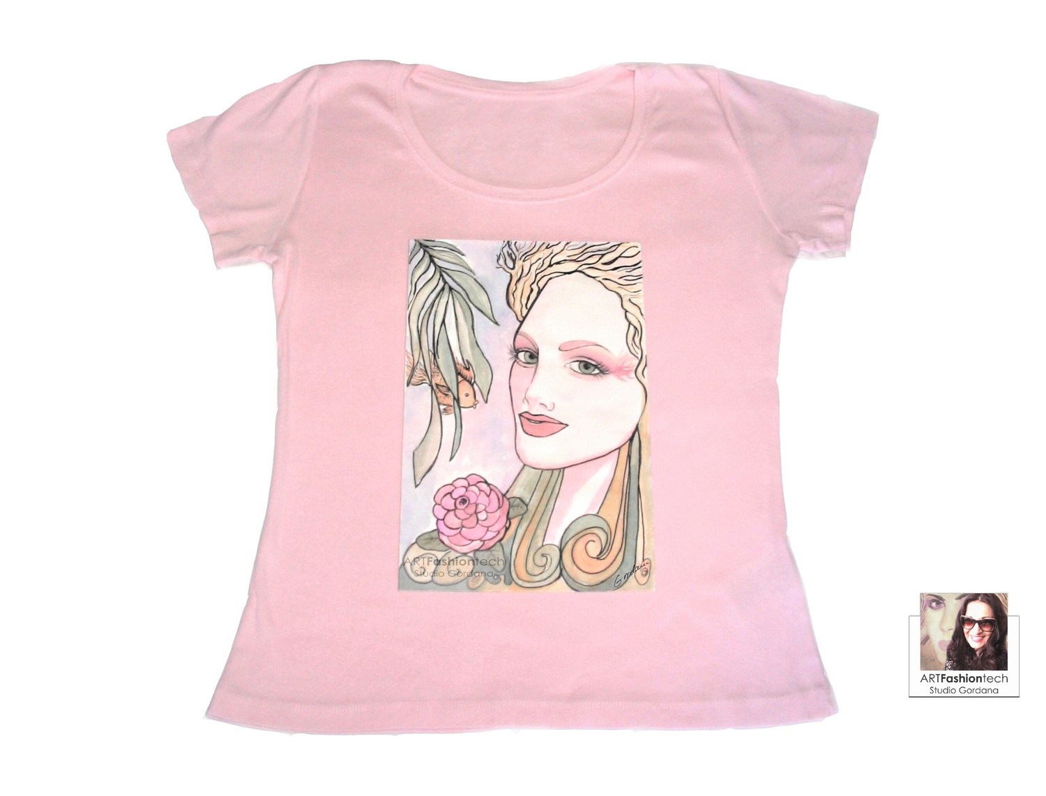 Ženska majica s tiskom originalne autorske ilustracije , 100%pamuk . Kao modna ilustracija -slika je original i unikat autorice i dizajnerice Gordane Drenovac te su majice izrađene u limitiranoj seriji . Slika – tisak izrađen je na digitalnom tiskarskom stroju za tekstilni tisak . Limitirana serija uključuje izradu jednog ili male količine istih proizvoda po specifičnoj naruđbi .