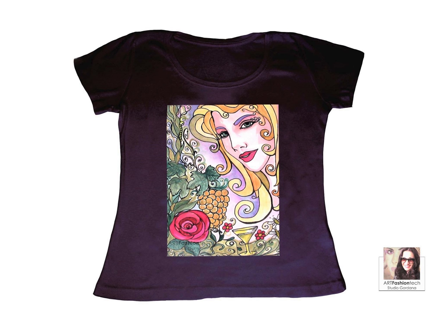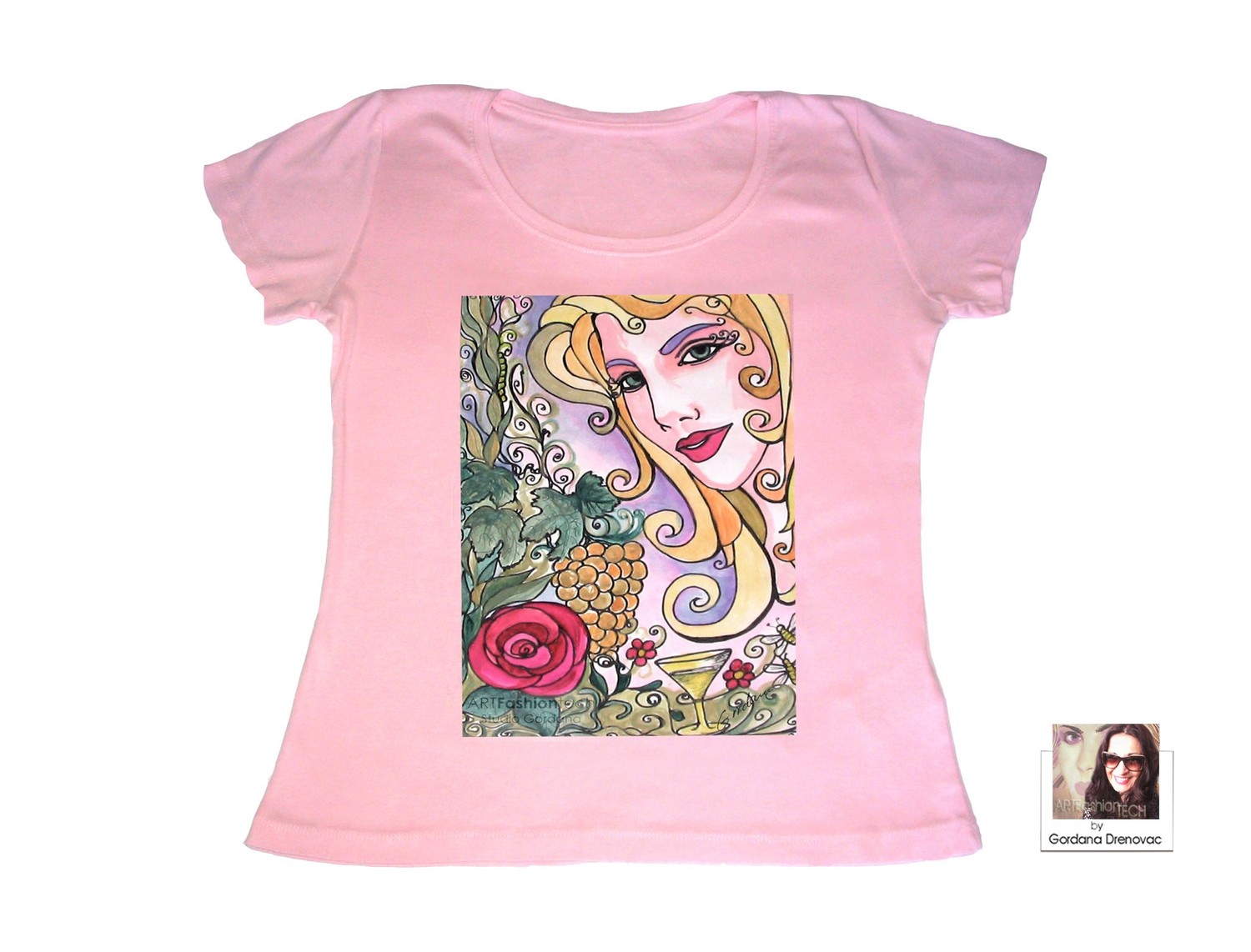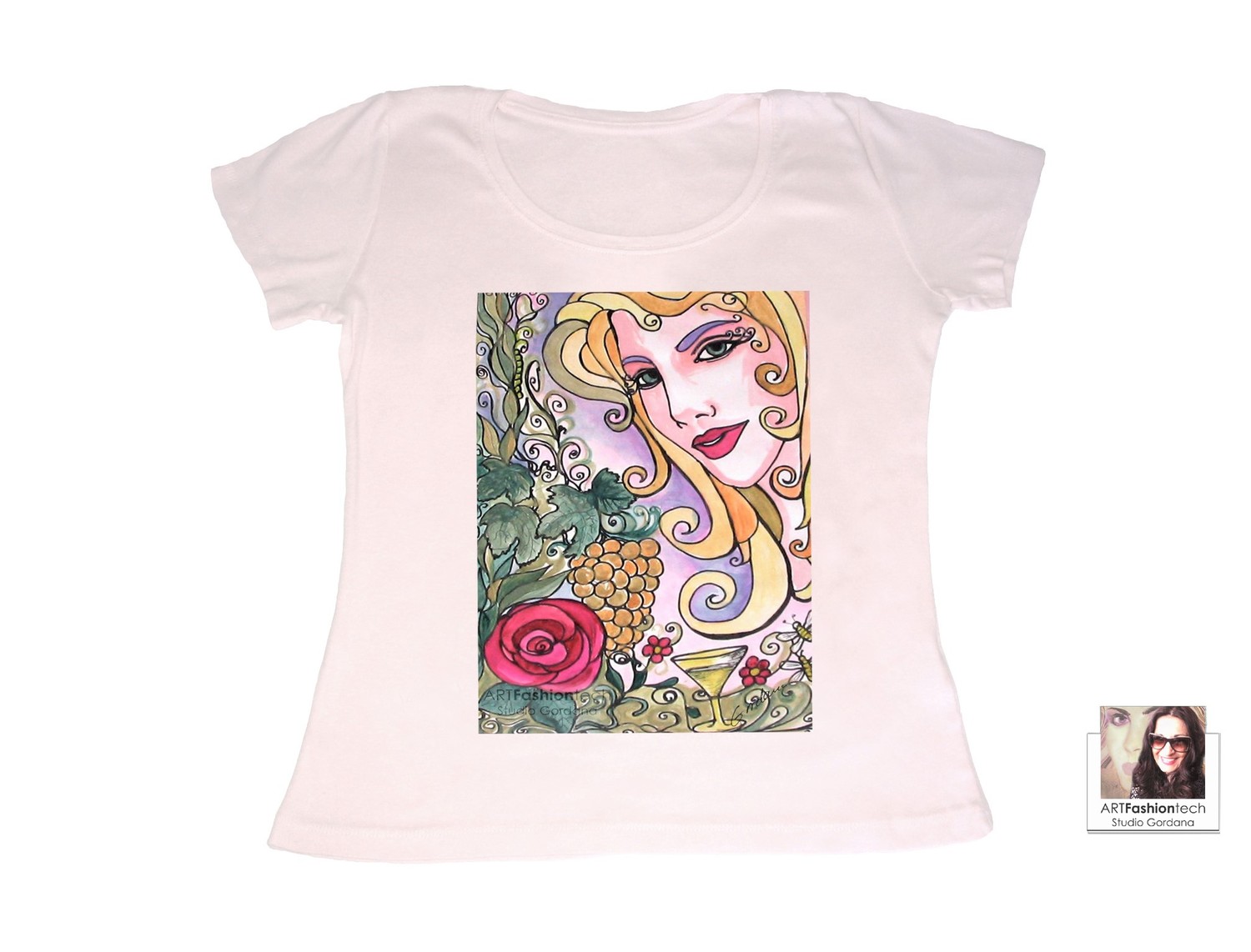 Ženska majica s tiskom originalne autorske ilustracije , 100%pamuk . Kao modna ilustracija -slika je original i unikat autorice i dizajnerice Gordane Drenovac te su majice izrađene u limitiranoj seriji . Slika – tisak izrađen je na digitalnom tiskarskom stroju za tekstilni tisak . Limitirana serija uključuje izradu jednog ili male količine istih proizvoda po specifičnoj naruđbi .